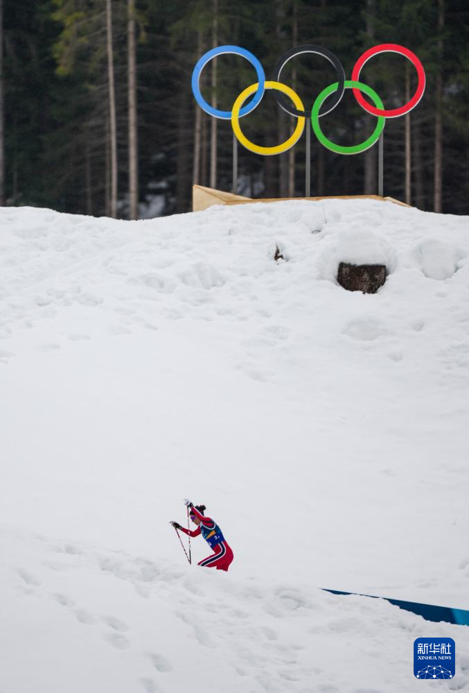 2月14日,挪威队选手克里斯廷·奥斯特古伦·福斯内斯在比赛后等待成绩确认。挪威队获得冠军。