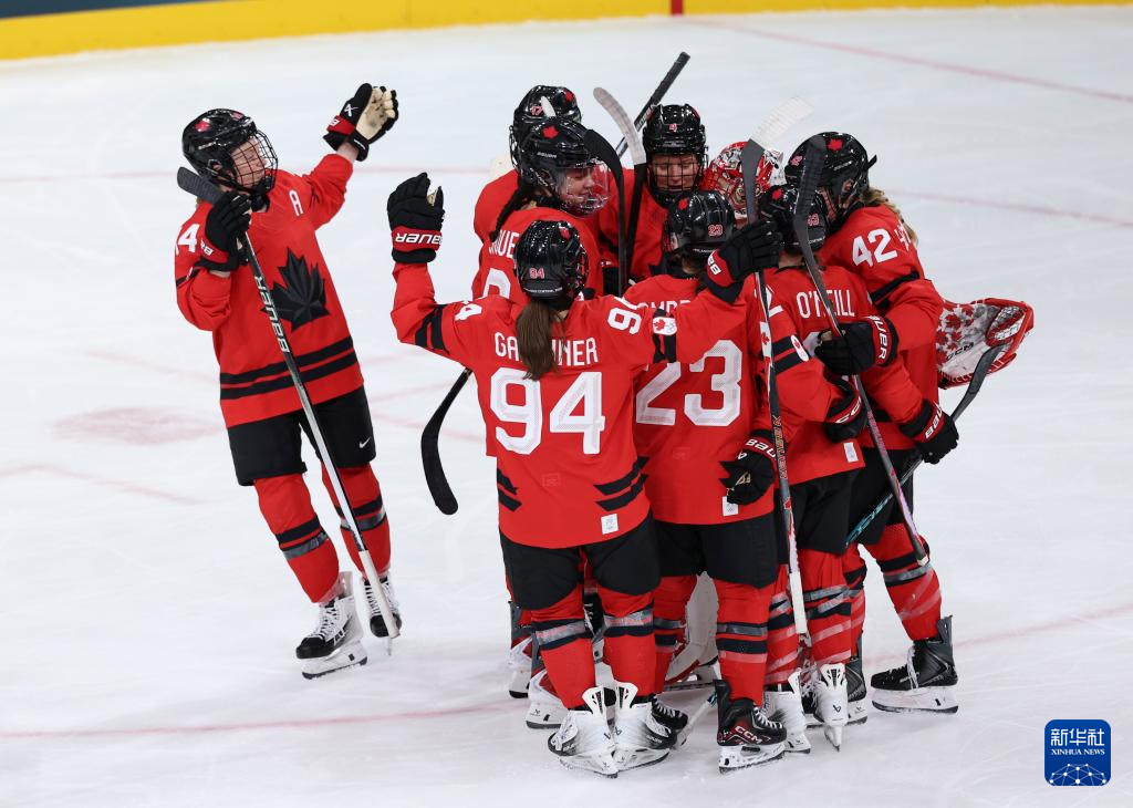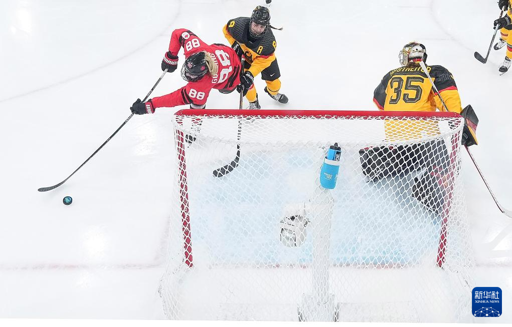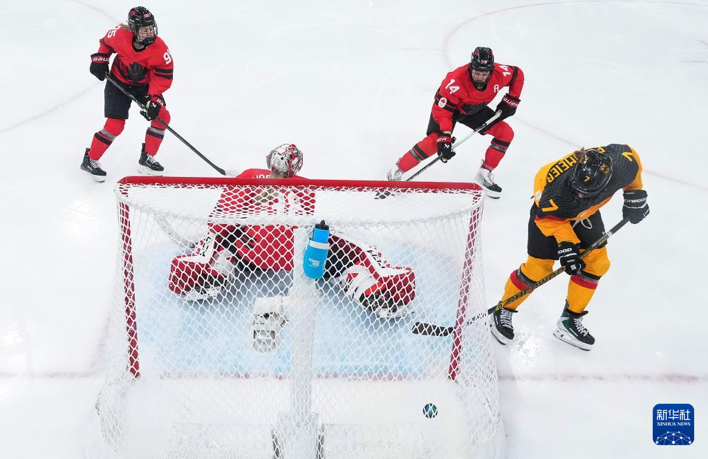 当地时间2月14日,在意大利米兰举行的米兰-科尔蒂纳冬奥会冰球项目女子四分之一决赛中,加拿大队5比1战胜德国队。