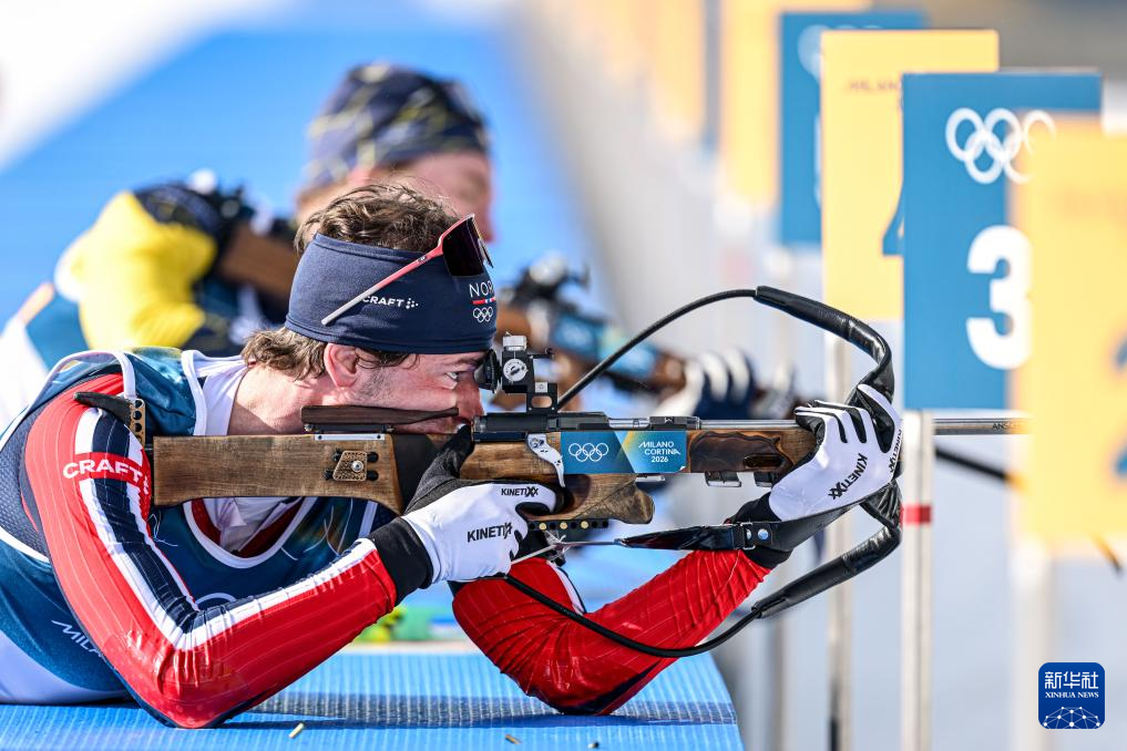 当地时间2月15日,米兰-科尔蒂纳冬奥会冬季两项男子12.5公里追逐赛在意大利安泰塞尔瓦举行。