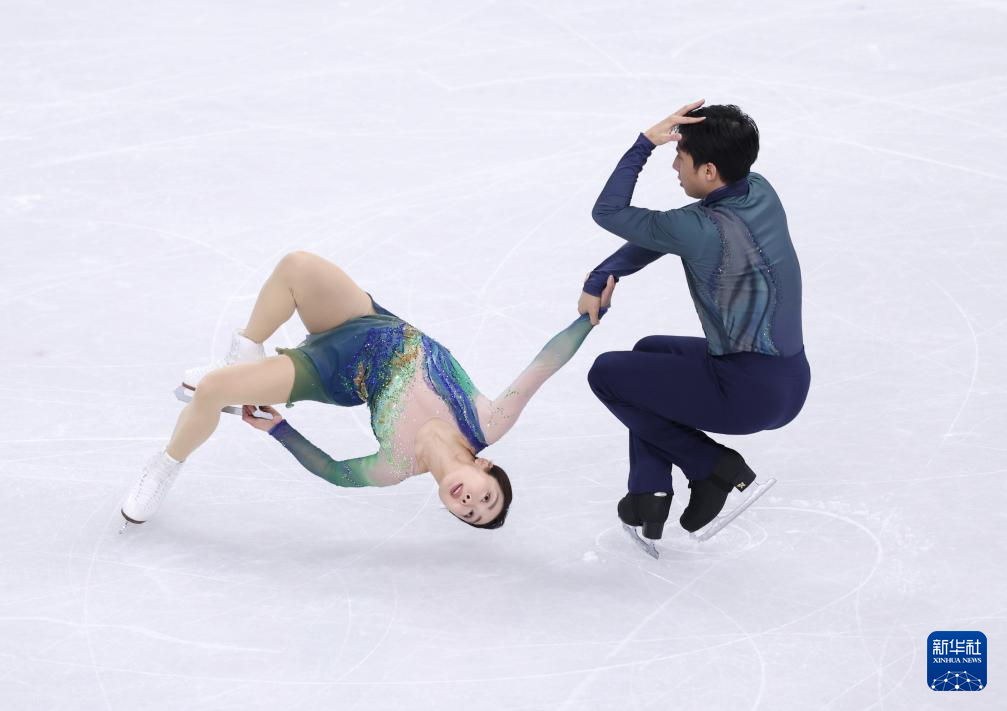 2月16日,中国选手隋文静(右)/韩聪在双人滑自由滑比赛中。最终他们获得双人滑项目第五名。