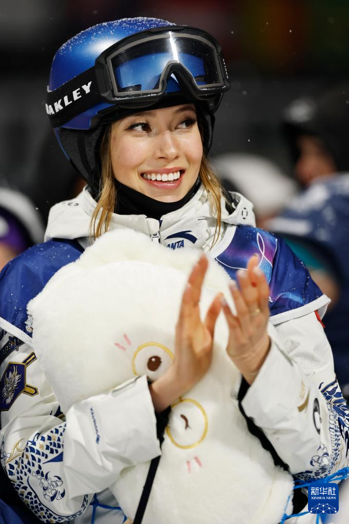 2月16日,中国选手谷爱凌在第三跳后。她获得亚军。