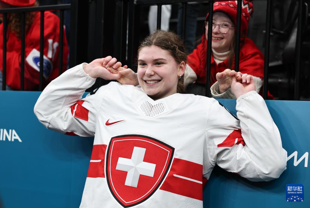 2月19日,瑞士队球员阿林娜·米勒在赛后庆祝胜利。