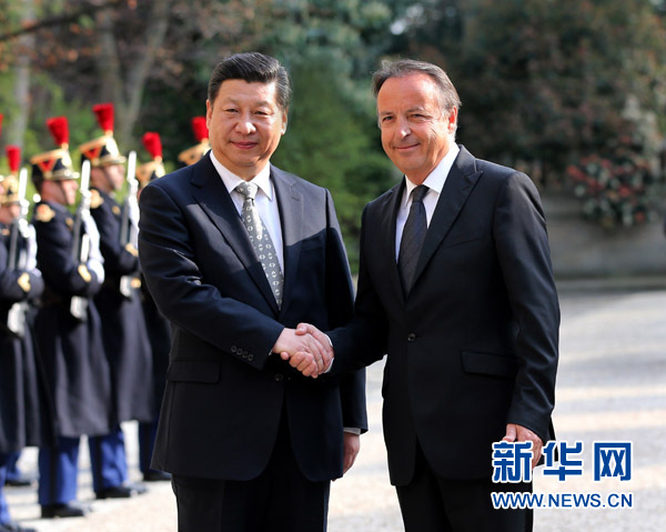 3月27日,國家主席習近平在巴黎會見法國參議長貝爾。新華社記者 龐興雷 攝
