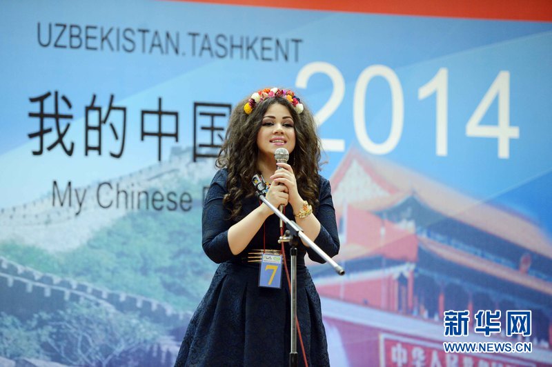 ????比賽分為自選題演講、朗誦比賽、知識問答、才藝表演四個環節。9名選手以“我的中國夢”為主題,從不同角度展現各自對中國文化的理解和對學習漢語的熱情。9名選手在2個多小時里通過朗誦中國詩詞、演唱中國歌曲等精彩表演受到現場觀眾的熱烈掌聲。最后來自塔什干東方學院學生詩琳獲得特等獎,她將代表烏茲別克斯坦前往中國參加“漢語橋”總決賽。