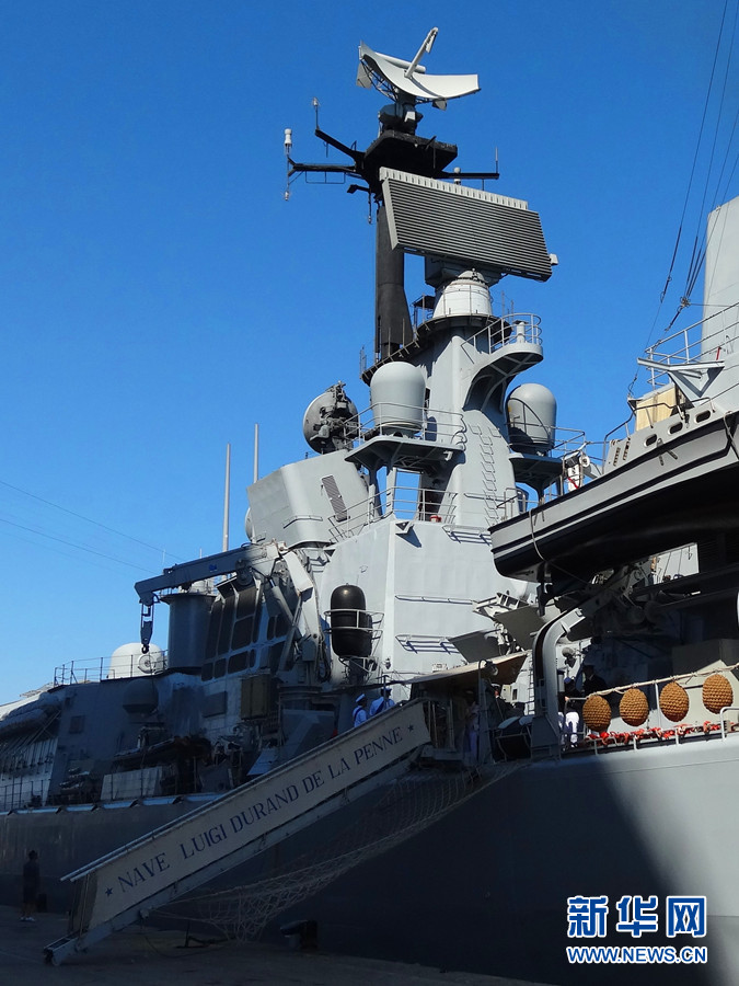 ????“路易吉·杜蘭德·德拉佩訥號”驅逐艦艦上設施。新華網(wǎng)記者 周喆 攝