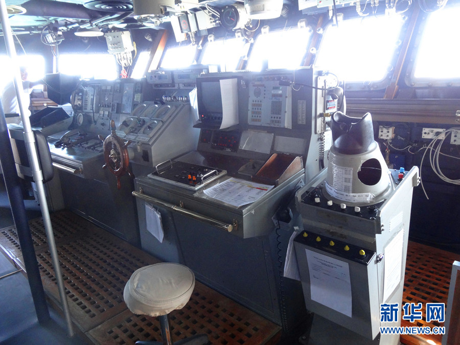 ????“路易吉·杜蘭德·德拉佩訥號”驅逐艦控制室。新華網記者 周喆 攝