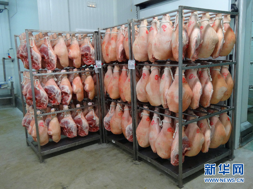 ????“因特珀?duì)柨恕惫镜囊晃回?fù)責(zé)人何塞?拉蒙(Jose Ramon)先生向記者介紹說,為了保證產(chǎn)品的質(zhì)量,根據(jù)歐盟食品安全法規(guī),西班牙生豬的飼料、喂養(yǎng)、處理、配送都會受到嚴(yán)格的監(jiān)控。比如“卡薩德蒙特”公司,送到這里的每條生豬腿都有自己的編號,并且這個(gè)編號會跟隨制作火腿的整個(gè)過程,這樣最終出現(xiàn)在市場上的每一件火腿產(chǎn)品,都可以追溯其原料來源和加工過程。