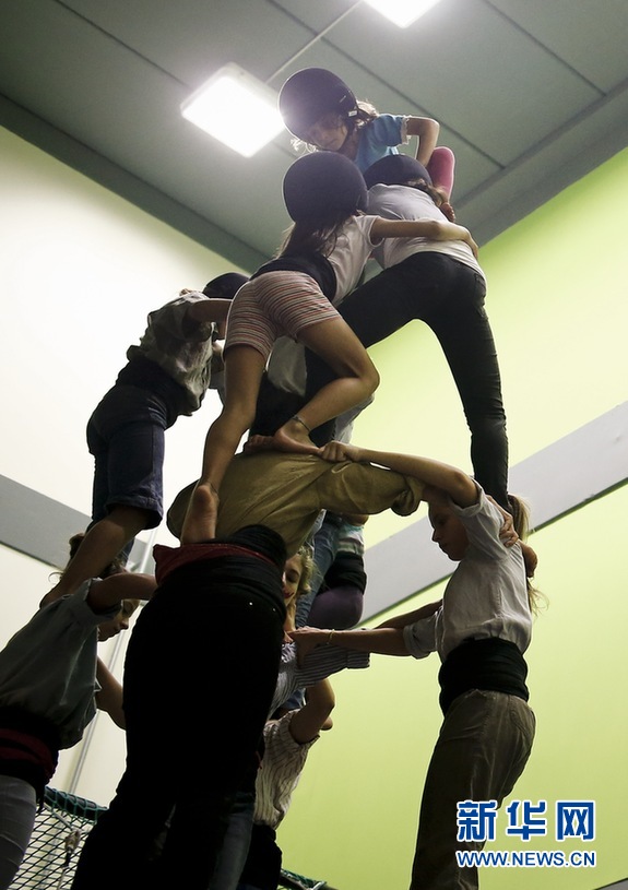 Jana在訓練中,她就快爬到最上面了。新華社巴塞羅那分社攝影師Pau Barrena 攝