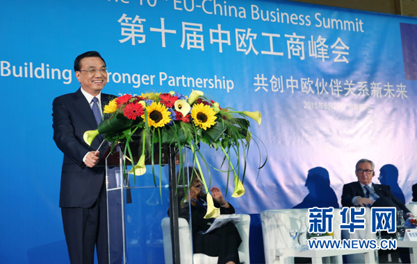 當地時間6月29日,國務院總理李克強在布魯塞爾與歐盟委員會主席容克共同出席中歐工商峰會,并發表主旨演講。新華社記者 姚大偉攝