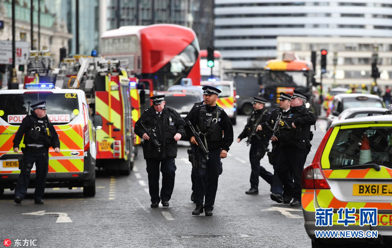 當?shù)貢r間2017年3月22日,英國倫敦,英國威斯敏斯特議會大廈附近發(fā)生襲擊事件,威斯敏斯特橋上有車輛沖撞行人;另外有持刀歹徒攻擊議會大廈執(zhí)勤警察后被擊斃,報道稱多人受傷。襲擊發(fā)生后,議會大廈臨時關閉,英國議會下院的會議暫停。倫敦警方目前暫時將此事作為恐怖事件處理。據(jù)外媒報道,英國警方封閉了倫敦議會大廈周邊的街道。圖片來源:東方IC