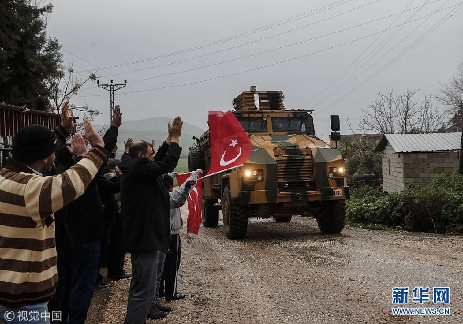 當?shù)貢r間1月23日,土耳其哈塔伊省,土耳其“橄欖枝”軍事行動持續(xù)。(圖片來源:視覺中國)