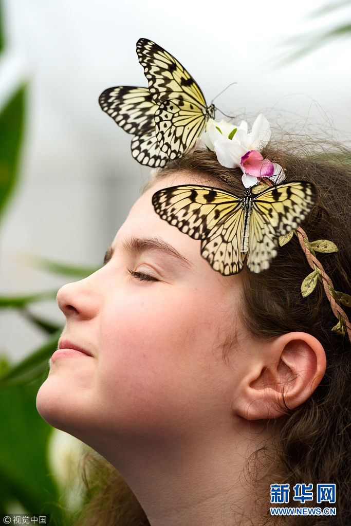 3月28日,英國(guó)倫敦自然歷史博物館舉辦奇異蝴蝶展,各式美麗新奇的蝴蝶翩翩飛舞,吸引了前來(lái)參觀的兒童與之親密接觸。(圖片來(lái)源:視覺(jué)中國(guó))
