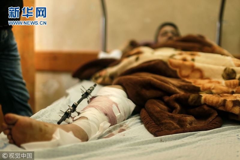 巴以邊境沖突致上千人受傷 受傷的巴勒斯坦兒童在醫院接受治療