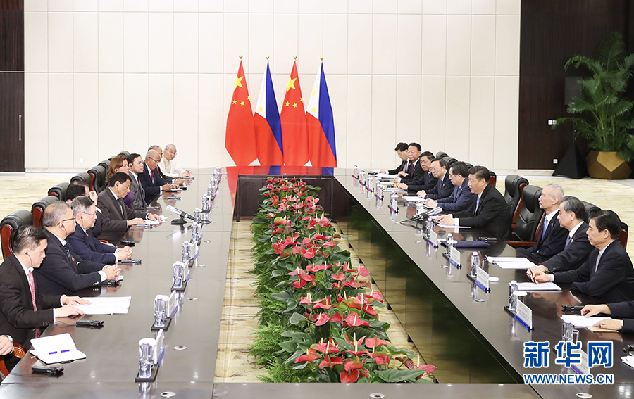習近平指出,杜特爾特總統(tǒng)就任以來,中菲關系翻開新篇章。中方愿同菲方一道,堅持睦鄰友好的大方向,確立共同發(fā)展的大目標,發(fā)揚妥處分歧的大智慧,確保中菲關系始終沿著正確方向健康穩(wěn)定發(fā)展。