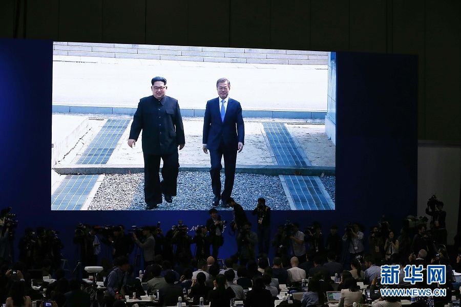新華社快訊:朝鮮最高領(lǐng)導(dǎo)人金正恩27日上午在板門店跨過軍事分界線,與韓國總統(tǒng)文在寅會(huì)晤。