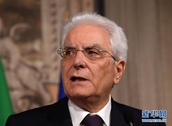 5月27日,在意大利首都羅馬,意總統(tǒng)馬塔雷拉出席新聞發(fā)布會。據(jù)當?shù)孛襟w報道,意大利新任總理孔特27日晚間與總統(tǒng)馬塔雷拉會面并提交擬定的內(nèi)閣成員名單時,馬塔雷拉否決了由意大利聯(lián)盟黨和五星運動力推的持疑歐立場的經(jīng)濟學家保羅·薩沃納出任財政部長。孔特向總統(tǒng)提出放棄組閣任務(wù)請求,請求得到總統(tǒng)確認。新華社發(fā)(阿爾貝托·林格里亞攝)