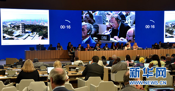 6月29日,在巴林首都麥納麥,第42屆世界遺產(chǎn)委員會會議審議中國申報的“古泉州(刺桐)史跡”文化遺產(chǎn)項目。新華社記者 王波 攝