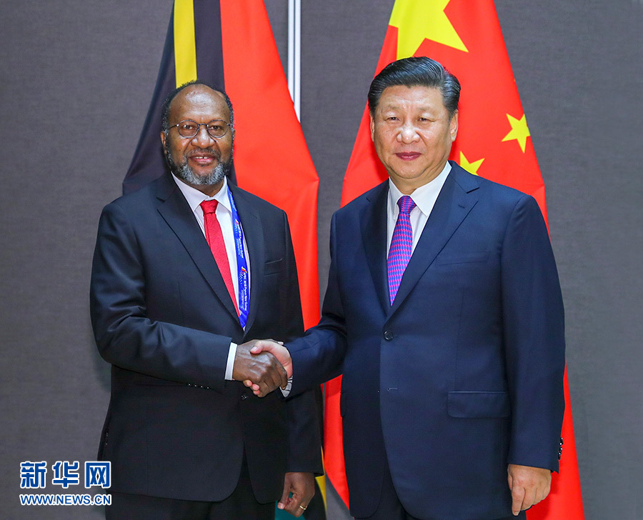 11月16日,國家主席習近平在莫爾茲比港分別會見建交太平洋島國領導人。這是習近平會見紐??偫硭?新華社記者 丁林 攝