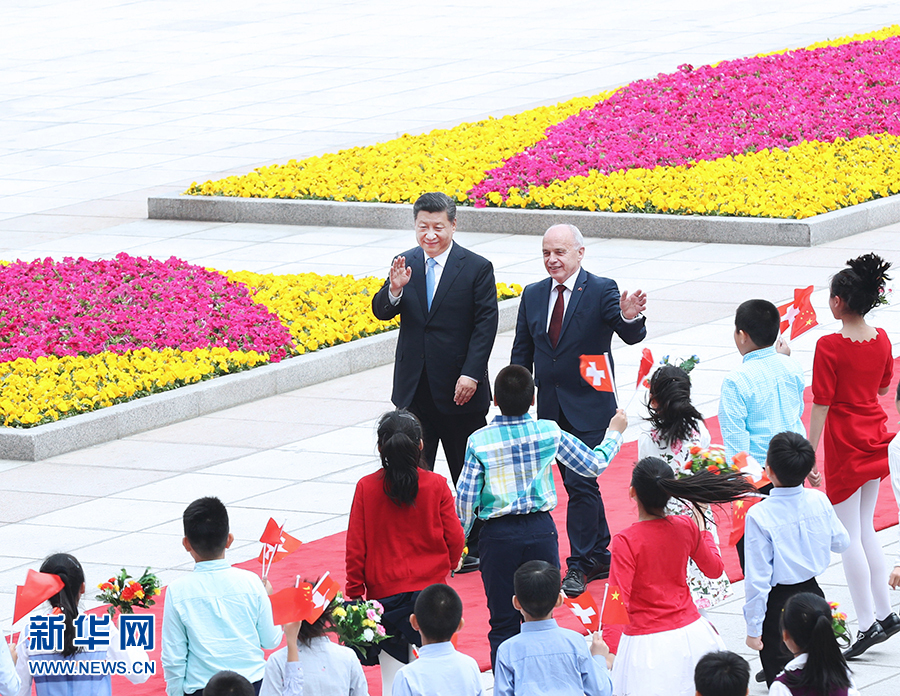 習近平指出,今年是中華人民共和國成立70周年。瑞士是最早承認并同新中國建交的西方國家之一,這體現(xiàn)了瑞士政府的長遠戰(zhàn)略眼光,也蘊含著瑞士人民對中國人民的友好情誼。建交近70年來,中瑞關(guān)系始終走在中歐關(guān)系前列。兩國建立創(chuàng)新戰(zhàn)略伙伴關(guān)系,是中國首次同外國建立以創(chuàng)新為標志的戰(zhàn)略伙伴關(guān)系。中方愿同瑞方一道,深化戰(zhàn)略合作。