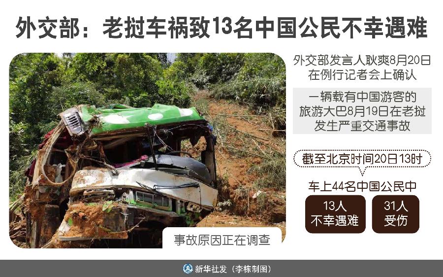 新華社北京8月20日電(記者 鄭明達)外交部發言人耿爽20日在例行記者會上確認,一輛載有中國游客的旅游大巴19日在老撾發生嚴重交通事故,截至北京時間20日13時,車上44名中國公民中,13人不幸遇難,31人受傷。