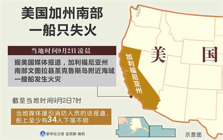 當(dāng)?shù)孛襟w報(bào)道,美國海岸警衛(wèi)隊(duì)和消防部門救援人員已趕往現(xiàn)場,全力滅火施救。截至當(dāng)?shù)貢r(shí)間2日7時(shí),當(dāng)?shù)孛襟w援引消防人員的話報(bào)道,船上至少有34人下落不明。文圖拉縣發(fā)言人比爾·納什告訴美國有線電視新聞網(wǎng),火災(zāi)已造成人員死亡,但目前無法給出確切數(shù)字。