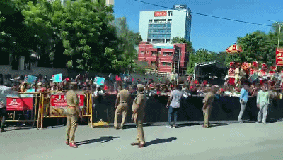 習主席的車隊駛離機場前往市區沿途,眾多當地學生和群眾簇擁在街道兩旁,揮舞中印兩國國旗,手舉習主席和莫迪總理照片,歡呼“中印友好”,表達對習主席的熱烈歡迎。