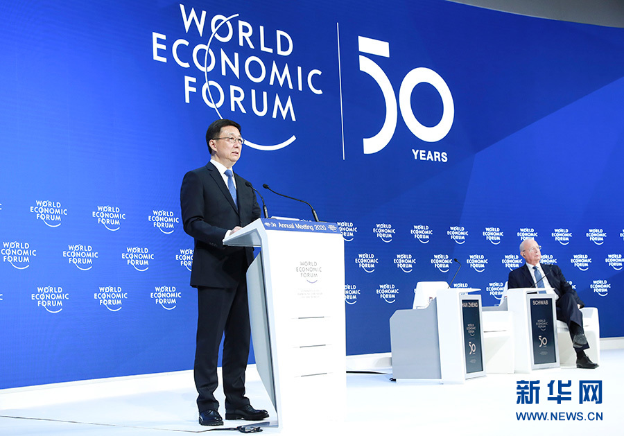 當?shù)貢r間1月21日,中共中央政治局常委、國務院副總理韓正出席達沃斯世界經(jīng)濟論壇2020年年會,發(fā)表題為“共建開放型世界經(jīng)濟 推動全球可持續(xù)發(fā)展”的致辭。 新華社記者 龐興雷 攝