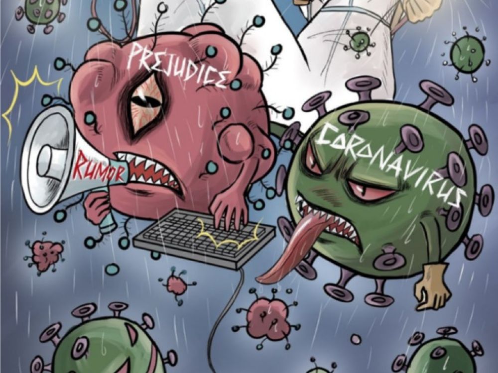 新華社2月29日在海外社交媒體平臺上播發以反對偏見和謠言為主題的“戰疫”漫畫。