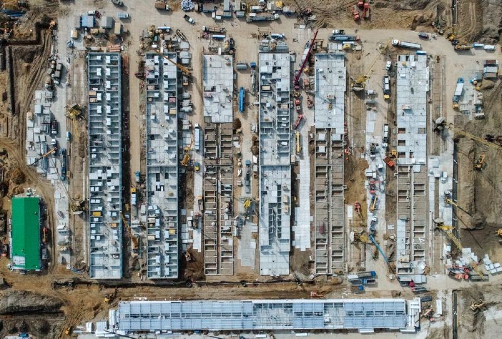 這是3月27日在俄羅斯首都莫斯科市郊拍攝的方艙醫院施工現場。新華社/衛星社