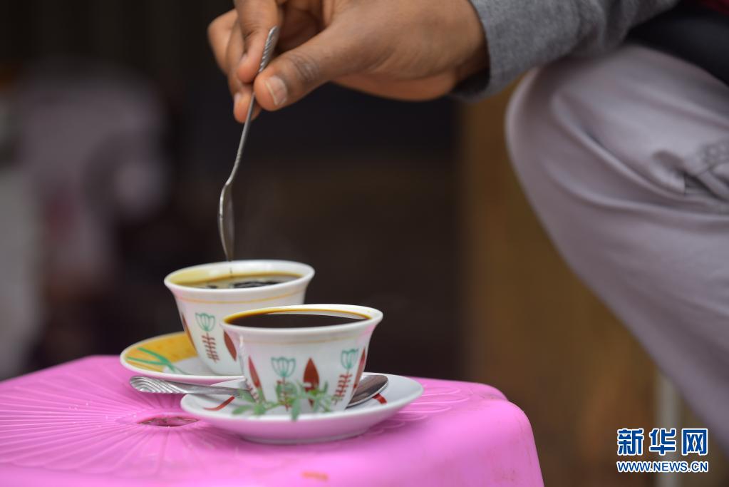 5月14日,顧客在埃塞俄比亞亞的斯亞貝巴街頭的咖啡攤品嘗咖啡。