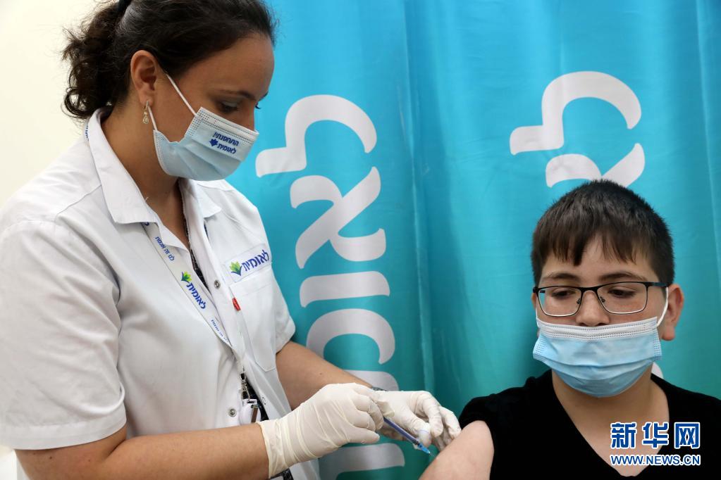 6月22日,在以色列中部城市莫迪因的一處醫療保健服務站內,一名未成年人接種新冠疫苗。