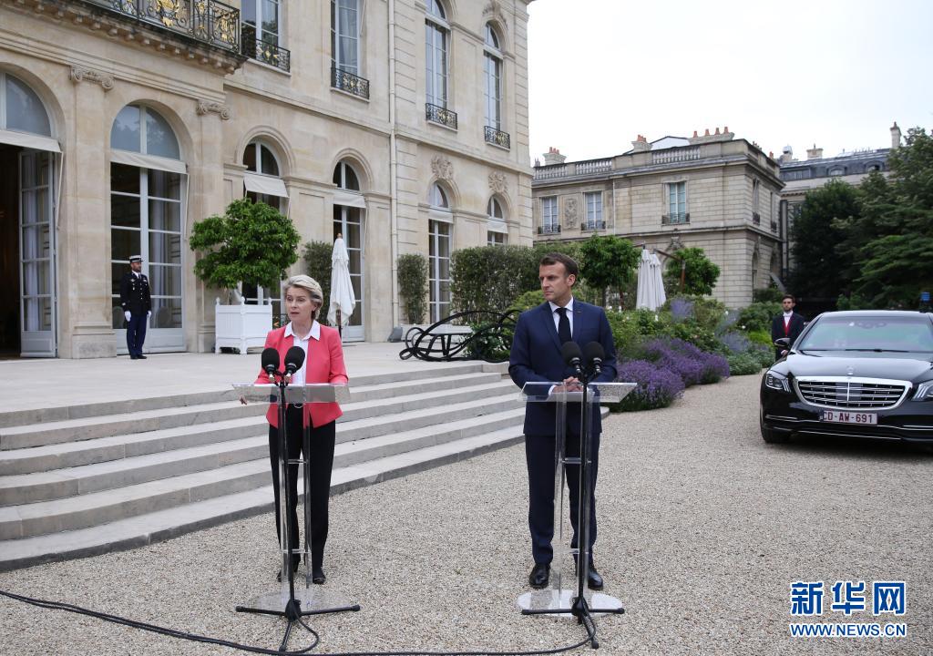 6月23日,法國總統馬克龍(右)與歐盟委員會主席馮德萊恩在巴黎總統府愛麗舍宮出席新聞發布會。