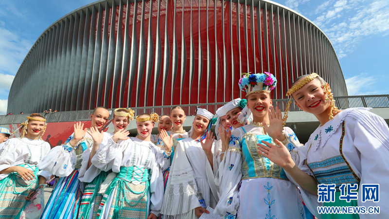 中国援白俄罗斯国家足球体育场6月7日正式启用。项目占地面积12.43公顷,建筑面积4.8万平方米,设有33145个观众坐席,是国际水准的专业足球竞技场和全民健身体育文化综合体。新华社发(任科夫摄)